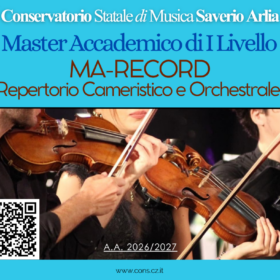 Il Conservatorio di Musica S. Arlia intende attivare per l'A.A. 2026/2027 i sotto elencati Master di I Livello: