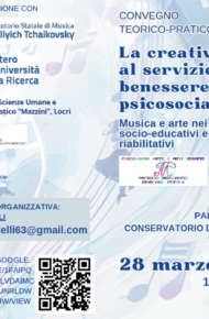 CONVEGNO TEORICO-PRATICO La creatività al servizio del benessere psicosociale Musica e arte nei contesti socio-educativi e riabilitativi Musica e arte nei contesti socio-educativi clicca per scaricare la Brochure….